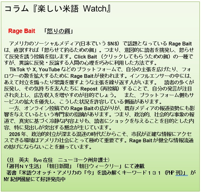 今週の「米語Watch」です。