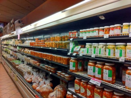 このお店では その日の朝に唐辛子に漬け込んだ白菜のキムチがなんといっても絶品、NJ店では午前中に完売してしまうほどの人気ぶり、そのほか日本人には馴染みの薄いキムチ類も豊富に並びいろいろ試してみるのも楽しいかも、、
