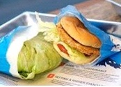 ご希望ならパンの代わりにレタスも頼めます。ポテトも オリーブ油で揚げるこだわり、そしてVeggie Burgerも 美味しいそうでした。