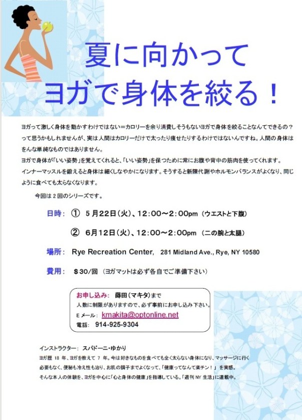 5月20日には第一回NYラーメンコンテストがPark Ave.のジャパンブロックフェア内(39丁目と40丁目の間)で行われるそうです。審査はラーメンを食べたお客様の投票で決定されるとの事。どんなラーメンが参加するのか、楽しみです。色々なラーメンを味わいながら、あなたも清き一票を投じてみてはいかがでしょうか。