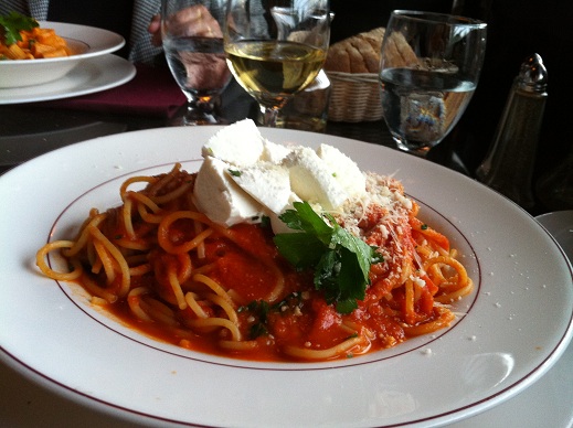 今回オーダーしたのはサラダがInsalata Tre Colori、 パスタは Spaghetti bella Napoli, Mezzi Rigatoni, Rigatoni Siciliano, デザートはTarutufoです。アペタイザーは$9~13、メインディッシュは$16~25と値段はリーズナブルだと思います。