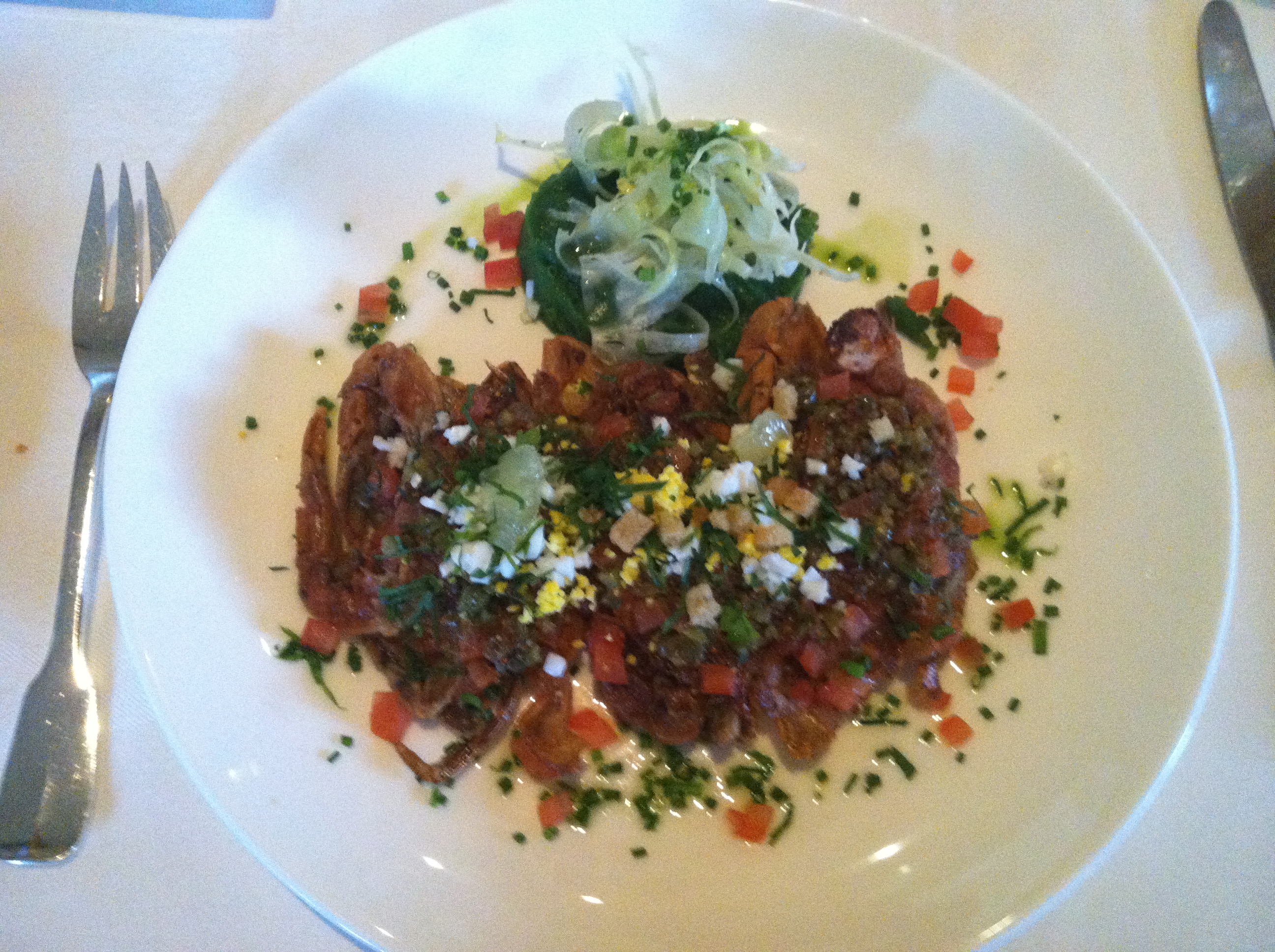 Grilled Bronzinoはテーブルの脇でウエイターが手さばき 良く骨と身に分けてくれました。この日はこれが人気メニューだったようで、あちこちで熟練ウエイターがパフォーマンスをしていました。