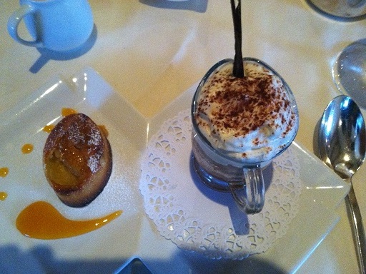 デザートはどれも$15ですが、私は焼きたてのアプリコットが入ったマドレーヌとカプチーノに見立てたチョコレート ムース(アプリコット入り)セットをオーダー。アプリコットがアクセントになり、甘さの中のちょっぴりのすっぱさに感服。