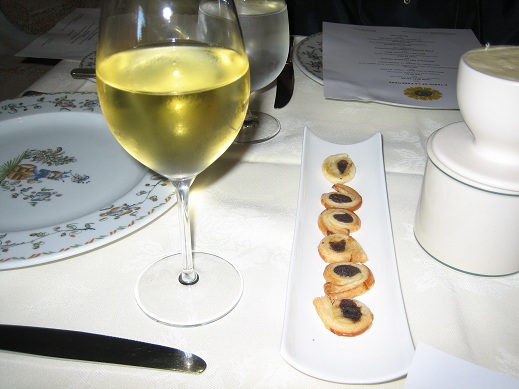 テーブルに座り飲み物をオーダーすると、まずレストランからイチジクをパイ皮で包んだアミューズ(On the Houseのつきだし)が出てきました。塩味が効いていてワインやビールにとても合います。