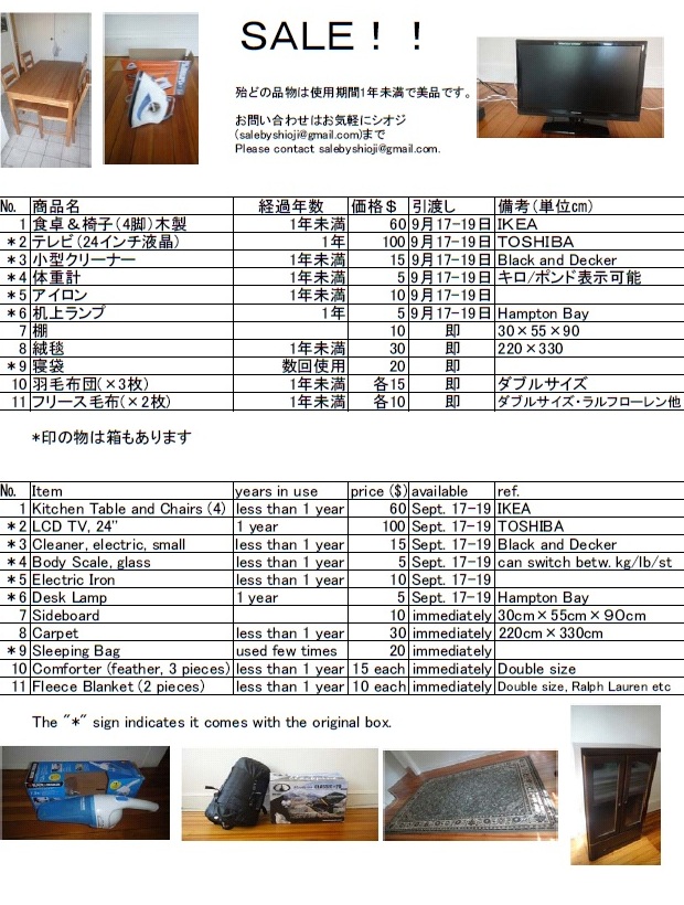 Saleのお問い合わせは salebyshioji@gmail.comまで。