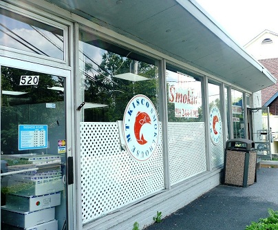 前回ご紹介した“Lexington Square Café”のお隣に あるのは、最高に美味なスモークサーモンが買える Mt. Kisco Smokehouse。もともと白かった壁がスモークのせいで茶褐色になったと言われているように、Mt. Kisco Smokehouseはこの店舗で鮮魚をおろし、たっぷり時間をかけて燻製にしている手作り職人の店 なのです。