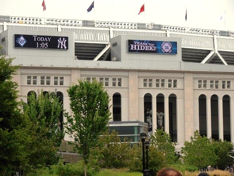 また7月28日にはブロンクスのヤンキースタジアムで松井秀喜選手の引退試合がありましたが、先着18000人の方たちに松井秀喜のBobblehead人形(首振り人形)が無料でもらえました。 お人形欲しさに試合の3時間前から並んで、やっと手に入れたファンも大勢いたようです。イチローが間近に見られたり、また黒田投手からサインをもらったご家族もおられたりと、日本人ファンが大いに盛り上がった一日でした。