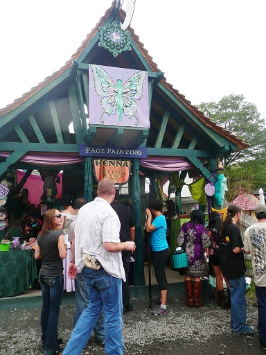 ステージや催しをまわる途中の通りにはアーチェリーなどの体験コーナーや土産物屋さんも多く、125人以上の職人さんが軒を並べているとか。貸衣装(そうです、衣装を借りて会場を歩くことができます)、髪結い、フェイス&ボディ・ペイントは大人気。仮面や花飾りのついたヘア・アクセサリーなど、ルネッサンスらしいお土産にはついつい手が伸びてしまいます。
