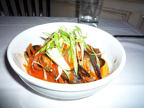 トマトソースがリッチなため、肝心のムール貝とクラムの味の印象がうすく、やや残念な感じでした。