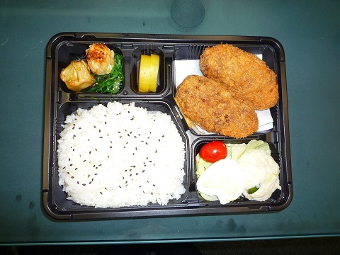 今日は元祖ホカホカ弁当の人気ベスト1のハンバーグとベスト2のメンチかつ、それに丼物でカツ丼と天丼をオーダーしてみました。