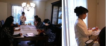 まずは、きめ細やかなレシピの説明、食材や道具の購入に関してのアドバイス、 そして シュークリーム作りで失敗する原因の具体例、また、お菓子作りをより楽しむには、 無理して一日でやらない、出来る作業は前 もってやっておく事などのお話から和やかに教室は始まりました。