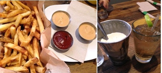 今回は1.California Style $11.95 にビーフとBrioche Bun(写真左)、2.Supreme Style $11.95 にButtermilk Fried Chicken(写真中央)、3.Brisket Style $13.95 に バイソン(写真右)を頼んでみました。サイドメニューにはFrench Fries。飲み物は ジンジャエールと Hot Honey Milk Shake をオーダーしましたが、ボリューム満点!