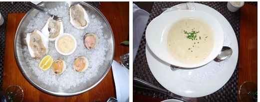 今日はまず Raw Barから“Blue Points Oyster”と“Little Neck Clam”、アペタイザーで、“New England Clam Chawder”、メインディッシュに“Parmesan Encrusted