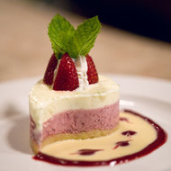 デザートには“Strawberry Lime Mouse”を頼んでみました。パイ生地の上にストロベリームースとライムムースが2層になっていて、そこにカスタードクリームとピューレされたイチゴの濃厚なソースが添えられている芸術的な一品です。イチゴの味とライムの香りが口いっぱいに広がり大満足です。ちなみにここのデザートは全てホームメイドだそうです。