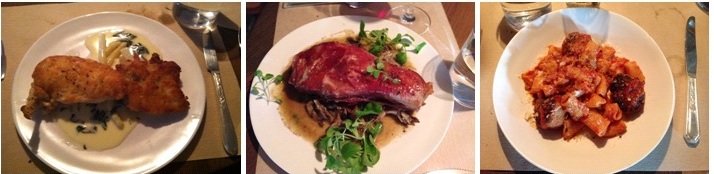 メインはParmesan Crusted Organic Chicken(チキンのパルメジャンチーズソテー)、Prosciutto Wrapped Berkshire Pork Chop(ポークのプロシュートハム巻)、Rigatoni W/Meatballs(ミートボール入りパスタ)で、チキンは外はパリパリ、中はジューシーでレモンソースの酸味がチキンと良くあっていました。ポークチョップは 厚切りでボリュームがある一方、肉質がテンダーでラップしてある薄切りのプロシュートハムとも口の中で程よく溶け合い、絶妙な味です。パスタはイタリアンレストランのような濃厚さはなく、ミートボールもあっさりとしていて美味しかったです。