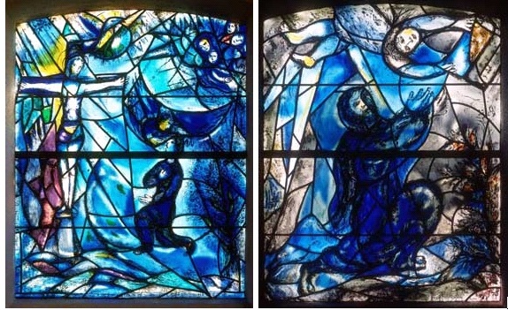 という訳で、シャガールのステンドグラスが合計9枚、マティスの生涯最後の作品と 言われているステンドグラスが1枚、教会の窓に飾られています。