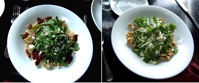 グリルで甘みを増した梨のスライスの上にクレソン、そして梨と相性抜群のピーカン、それも隠し味にスパイスを効かせたものとゴルゴンゾラチーズをまぶした一品。梨の甘みを加えたフレンチドレッシングで完璧でした。友人のEndive and Baby Arugula Saladは柔らかなベビーアルグラに細切りにした エンダイブがミックスされ、ウォールナッツとブルーチーズがまぶしてあります。