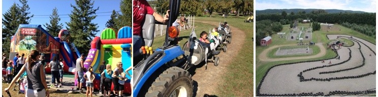 WestchesterからTaconic State Parkwayを約50分ほど走り続けたところにあるBarton Orchardsは家族連れリピーターが多い農場として知られており、今回も朝11時前に到着した時には、入場チケットブースには行列ができていました。りんご狩りだけだと入場料は$3ですが、ここにはFun Parkという遊び場があり、追加で$9.5かかります。
