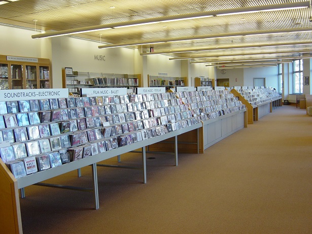 2階には先ず正面にFlinn Galleryと言う展示室があり、DVD、CDのコレクションがすごいのですが、クラッシック音楽からからジャズまでずらりと並んでいます。また日本の本も文庫本、料理、