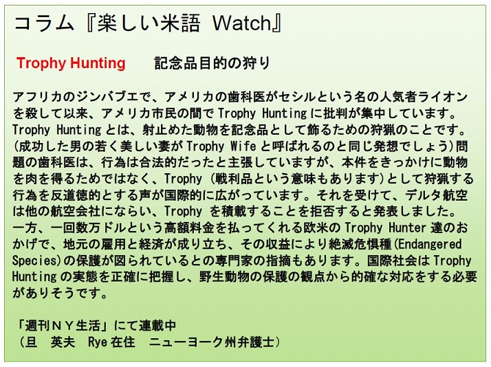住宅地を車で走っていた時のこと。何気なくバック ミラーを見ると、そこにはピカピカとライトをつけたパトカーがいた。さっきの一時停止はちゃんと停まったのに…。とにかく車を停める。やってきたおまわりさん曰く、「NY州では16歳未満の子供は後部座席でもシートベルトをしなくてはいけない。」そのとき後ろに乗っていたシートベルトなしの息子は14歳。3点減点と$150の罰金を科せられた。