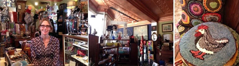 商品はバリエーション豊か。所狭しと,しかし美しく楽しくディスプレーされている商品は、どれも面白いものばかり。ジュエリー、バッグ、食器、カード、 おもちゃ、ソープ、楽器、家具、などなど。また彼女自身のRug hookingの作品も置かれています。行くたびに違ったものが並んでいて、思わず足を踏み入れずにはいられません。