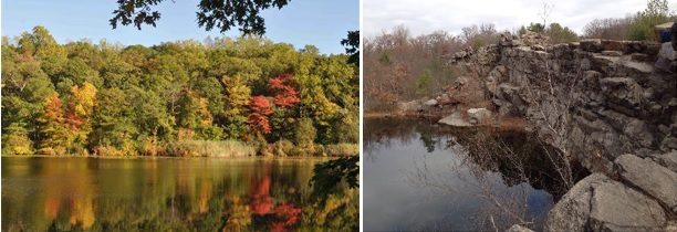 簡単にドライブしていける紅葉の名所はたくさんありますが、近場ではWhite Palins の北方ValhallaにあるKensico Dam Plaza、そして、その湖周りの景色も素晴らしいです。Kensico Dam Staircase Loopは1.1Mileほどのトレイルで、ダムから湖を眺めながら、30分程で歩けます。 貯水湖の周りのRoute 22 (Mount Kisco Road,22号線) からRoute 120(King Street) をドライブするのも簡単です。そしてドライブの途中で、Cranberry lake Preserve ( Trail) に寄ってみました。自然たっぷりのハイキングコースです。Kensico Damの建設の際に活躍した石切り場 (Quarry ) 跡もあり、楽しめます。